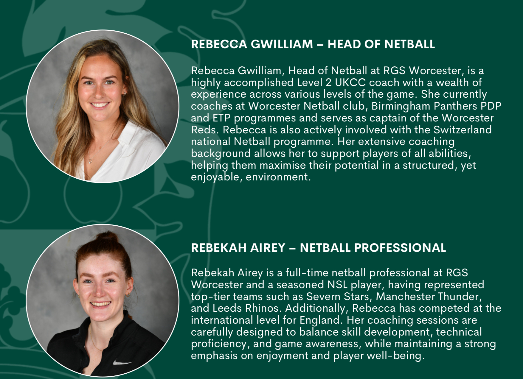 Fun Netball catering for children of all abilities focusing on Fundamental skills gameplay. The sessions are led by RGSW head of Netball and Level 3 Rebecca Gwilliam and Netball professional Rebecca Airey